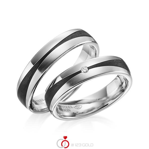 Paar Carbon Trauringe Eheringe In Platin 600 Platin 600 Mit Carbon Einzug Mit Zus 0 02 Ct Brillant Tw Si Von 123gold